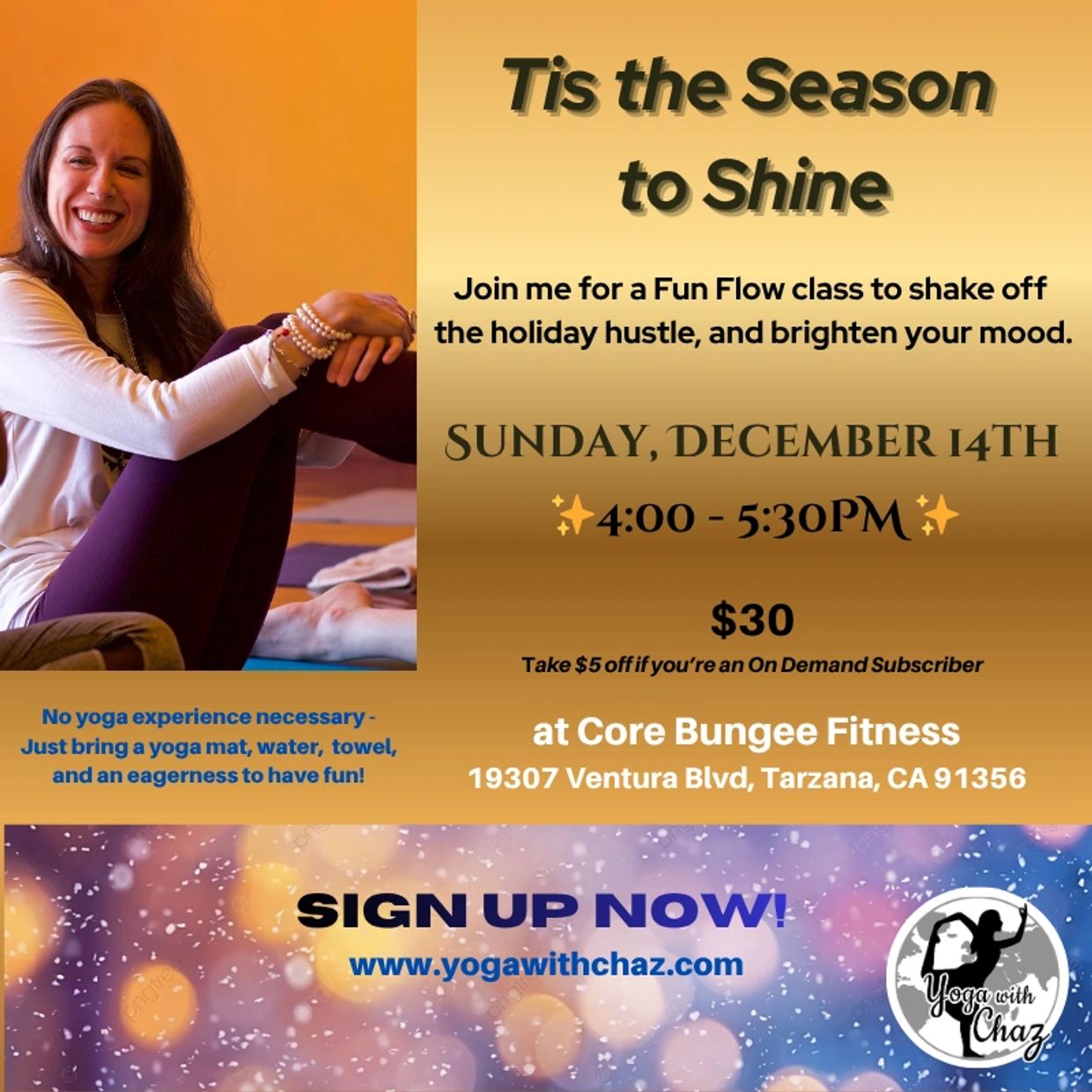 "Chaz offers the fullness of what life can offer packaged into one class. She is both soulful and giving, funny, both real and accessible in her teachings, leading a practice that challenges the most advanced students while offering enough instructional advice for growth for everyone. Her tastes in music are equally diverse and when coupled with a morsel of philosophy/spirituality thrown in, make hers the most enjoyable practices in the San Fernando Valley (and beyond)." -Tim R.